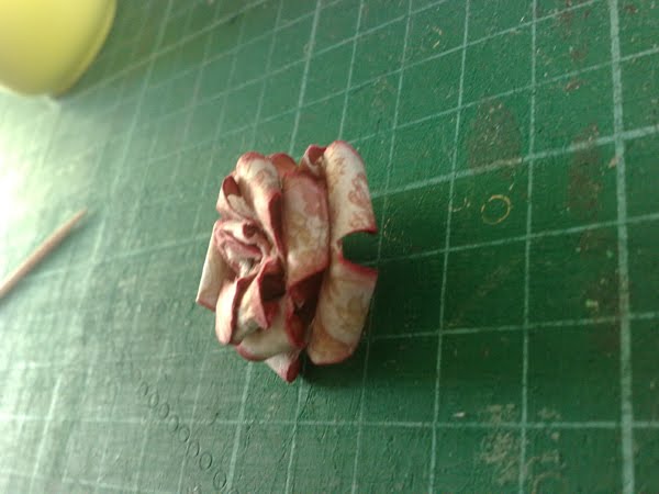 6. a kettes és egyes szirmot hosszirányban is feltekerjük, ez lesz a közepe: